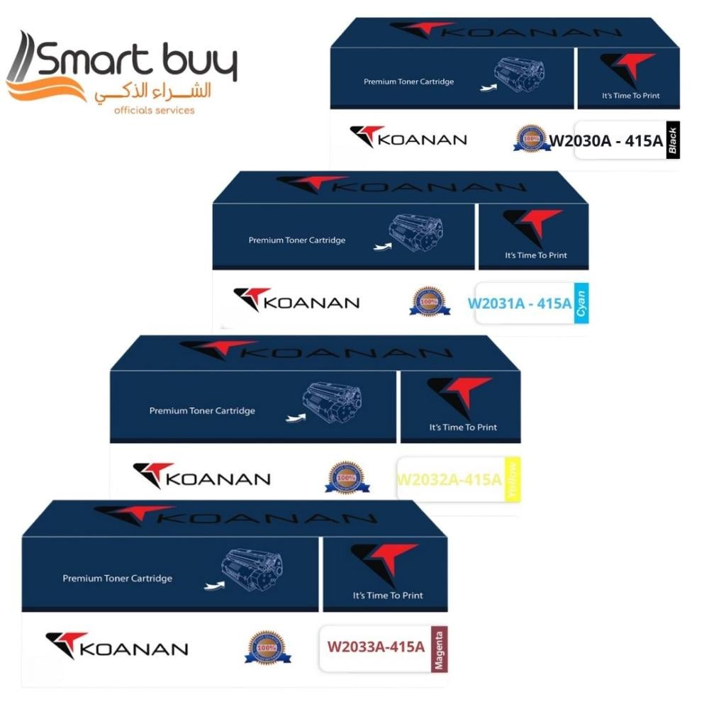 🖨️ حبر كونان طقم كامل متوافق مع طابعات اتش بي KOANAN 415A (أسود، سماوي، أصفر، أرجواني) – طباعة احترافية بتكلفة اقتصادية | متجر الشراء الذكي SmartBuy