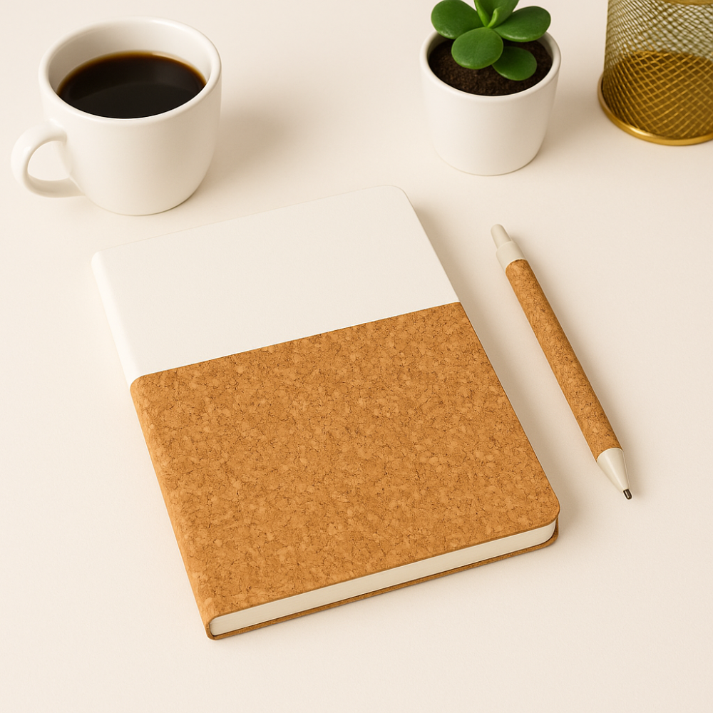 ✨ امتلك الآن دفتر ملاحظات خشب وأبيض مع قلم لإضافة لمسة أنيقة على يومك أو لتقديمه كهدية عملية.