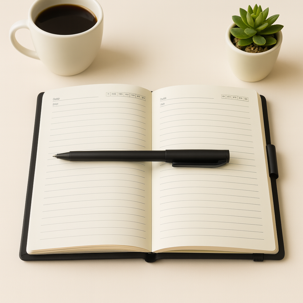 دفتر ملاحظات أنيق باللون الأسود مع قلم مدمج وفواصل ملونة لاصقة لتسهيل تدوين وتنظيم أفكارك اليومية. تصميم عصري وعملي يناسب الطلاب، الموظفين، وأصحاب الأعمال الذين يحتاجون إلى وسيلة مميزة لتسجيل الملاحظات المهمة بترتيب وانسيابية.