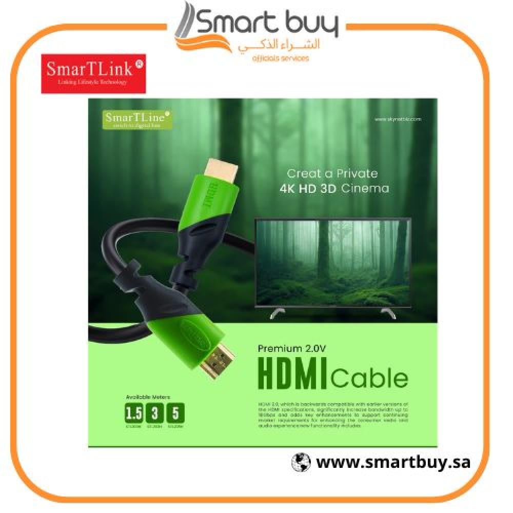 كابل HDMI سمارت لاين بريميوم 2.0V بدقة 4K HD و3D بطول 5 أمتار