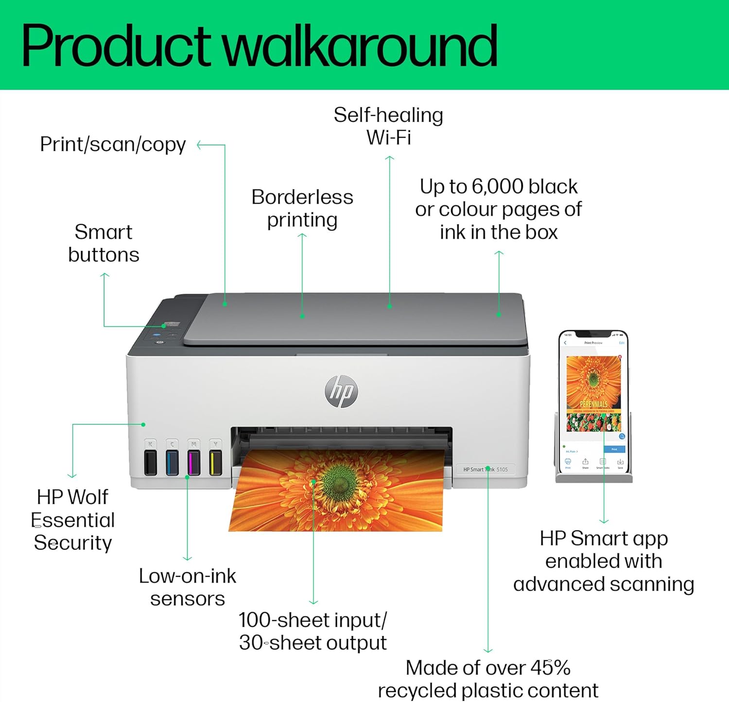 - HP Smart Tank 580 Wireless Printer ensures flexible, high-quality printing with the ease of printing .